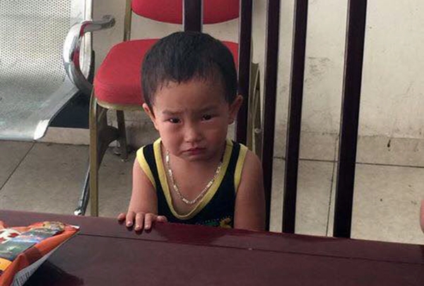 Có mặt cùng thời điểm tại trụ sở Công an phường, một người dân đã sử dụng điện thoại di động chụp lại 2 tấm ảnh cháu bé rồi sau đó đăng lên mạng xã hội Facebook. Lập tức, ánh mắt van ơn, ngơ ngác cùng các biểu cảm sợ hãi trên gương mặt bé trai đã làm dậy sóng cộng đồng mạng, cào xé lương tri của những bậc làm cha làm mẹ. Hàng ngàn lượt chia sẻ, hàng vạn bình luận được để lại dưới mỗi bức ảnh. Phần lớn đều tỏ rõ sự xót xa cho hoàn cảnh côi cút, thương tâm.