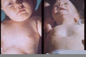 Sốt, bú kém, có các di tật bẩm sinh: tim bẩm sinh, không hậu môn, trẻ đẻ non, thấp cân…