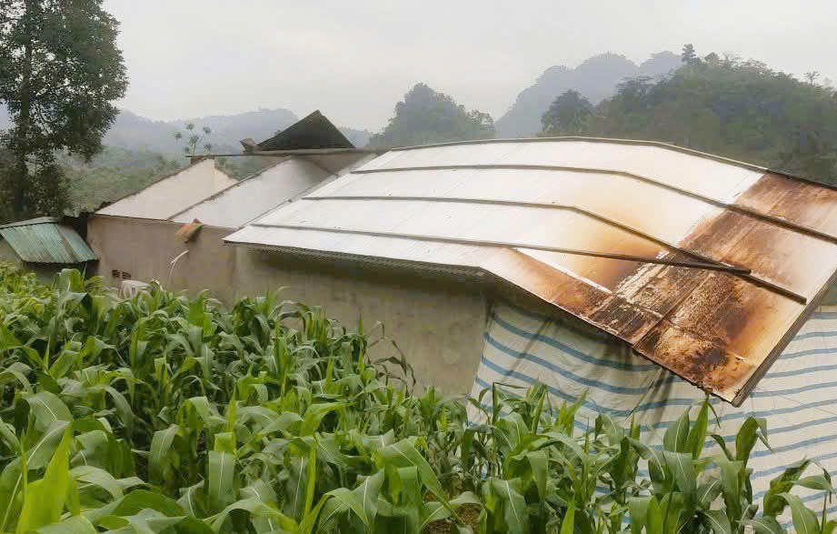 Bên cạnh đó, 42 chuồng trại bị tốc mái, nhiều công trình dân sinh hư hỏng như nhà màng, hội trường thôn, cổng chào, cùng khoảng 1,2 tấn thóc bị hư hại.