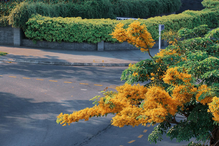 Hoa sưa thường nở từ cuối tháng 3 đến tháng 4 hàng năm. Khi các cây cùng lúc nở rộ hoa thì cũng là lúc những con đường được phủ một màu vàng rực rỡ nhưng cũng đầy lãng mạn.