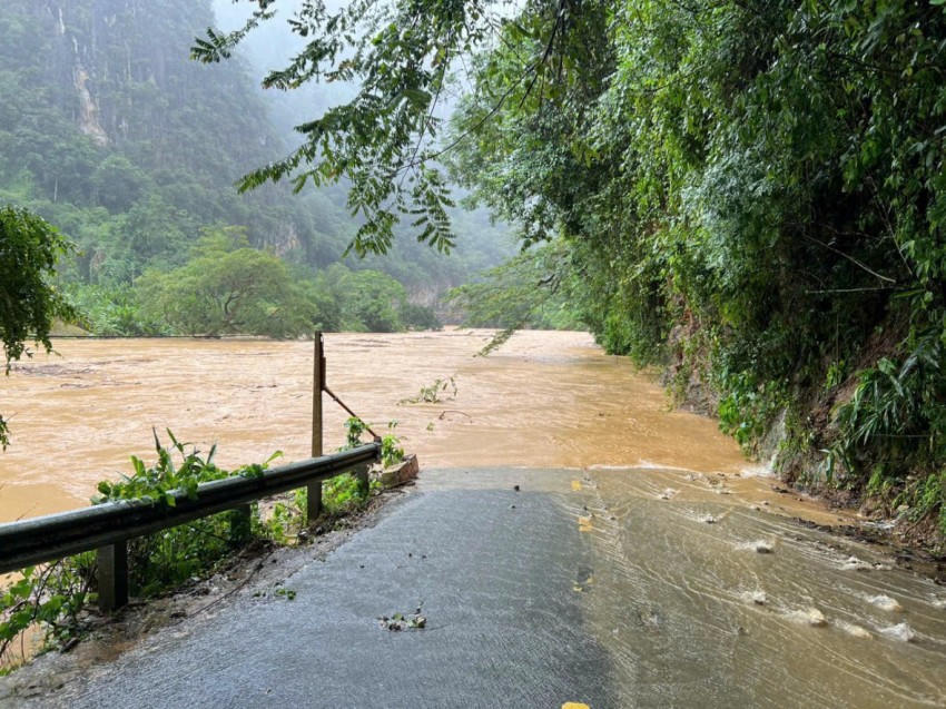 Mực nước trên các sông, suối dâng nhanh, nhiều tuyến quốc lộ, tỉnh lộ và đường liên xã, liên thôn bị ngập sâu, sạt lở, chia cắt.