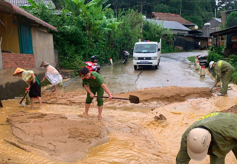 Công an xã phối hợp với chính quyền địa phương đã tổ chức di dời khẩn cấp 18 hộ, 75 nhân khẩu có nguy cơ sạt lở đến nơi an toàn.