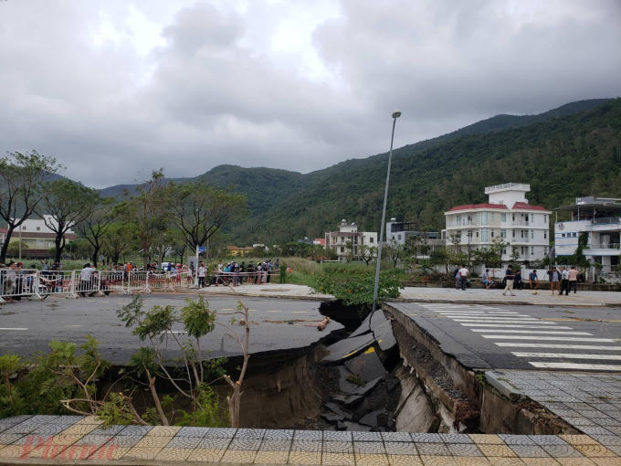 Mưa lũ gây sụp lở trên tuyến đường tại Sơn Trà, TP Đà Nẵng (Ảnh: Phụ nữ Online)