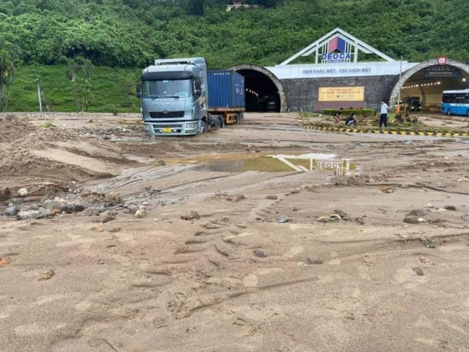 Nước lũ đổ về gây ngập nặng hệ thống giao thông xung quanh hầm đường bộ Hải Vân.