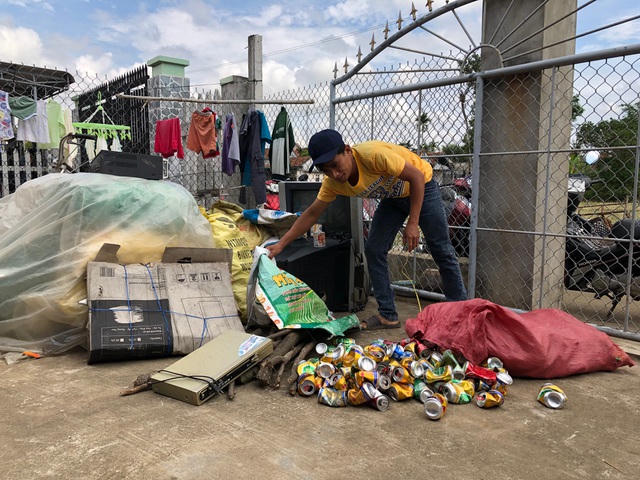 Anh Duy làm nghề thu mua ve chai, hoàn cảnh gia đình rất khó khăn.