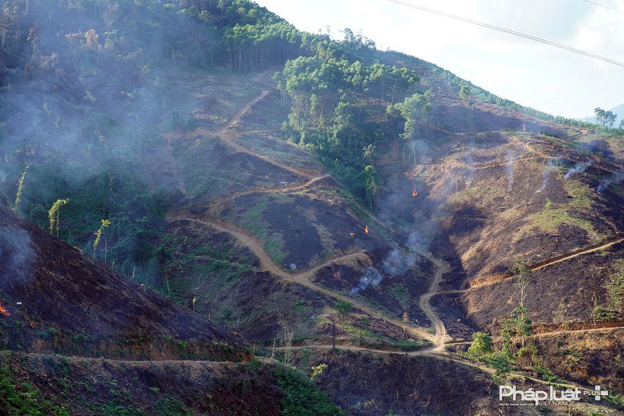 Những cánh rừng đầu nguồn ở hồ Đèo Lai bị đào bới nham nhở, rừng bị phát trắng, hiện trường chỉ còn những làn khói đen.