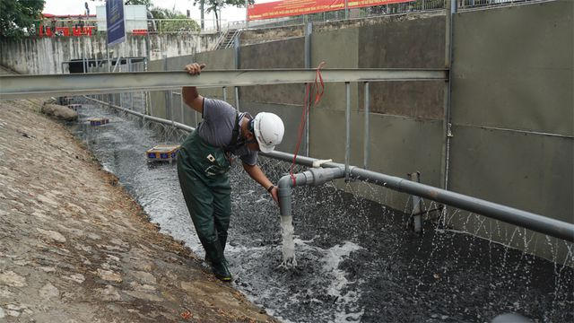 Mục sở thị công nghệ biến bùn thành CO2 và nước trên sông Tô Lịch