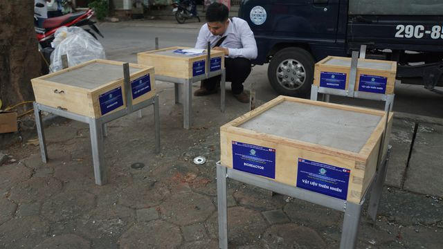 Bên trong rào quây, các chuyên gia đặt 4 tấm vật liệu Bioreactor. Nước nano liên tục bơm vào khu vực để tạo dòng chảy lưu thông.