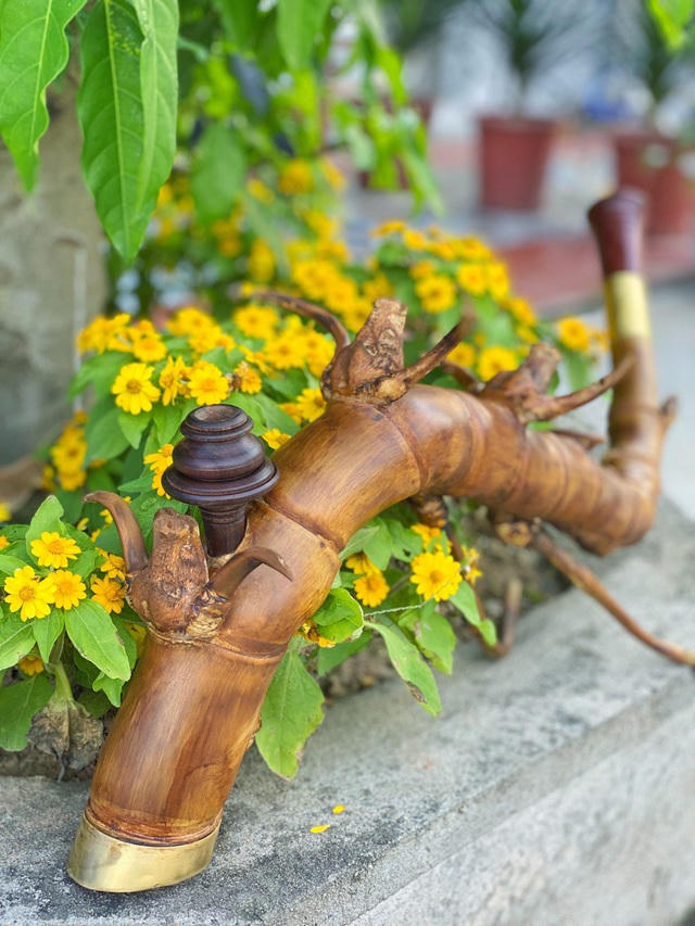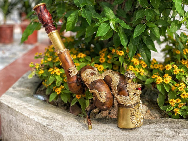 Chiếc điếu cày hình rồng được dát vàng tinh xảo của anh Tuấn