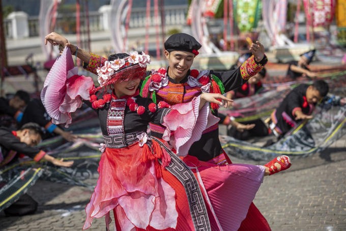 Trong khi đó, trang phục trong đám cưới người Dao Đỏ và vũ điệu Mường Hoa được thiết kế và thực hiện công phu, với những nét đặc trưng của dân tộc làm sáng bừng cả không gian lễ hội, thổi vào mùa thu Sa Pa cả một đời sống Tây Bắc sống động, quyến rũ.