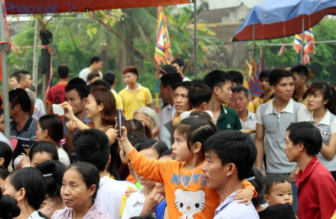 | Cùng bố đi xem lễ hội. (Ảnh: Đức Biên). |