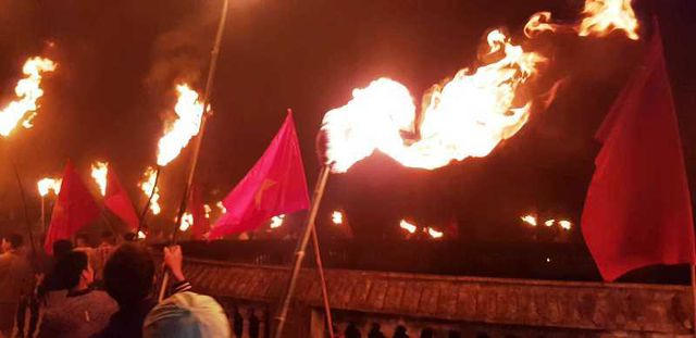 Trong thời khắc giao hòa giữa trời và đất, ánh lửa thiêng bùng lên sáng rực cả một góc trời, mọi người chĩa đầu cây đuốc vào để lấy lửa, sau đó giơ cao ngọn đuốc rồi tỏa về khắp các ngõ, xóm. Trên các nẻo đường, ai cũng thi nhau chạy thật nhanh để mong sao mình là người đầu tiên về nhà sớm nhất bởi người dân trong làng Cát Đằng quan niệm rằng, nếu là người về nhà đầu tiên thì cả năm đó, gia đình sẽ gặp nhiều may mắn và làm ăn phát đạt.