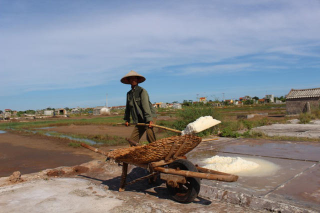 Để làm ra được hạt muối thật không phải đơn giản, người làm muối phải trải qua 15 công đoạn. Từ 4h sáng, diêm dân đã phải ra đồng, đến đầu giờ chiều, tranh thủ lúc trời nắng gắt, bà con diêm dân lại ra cánh đồng muối, làm quần quật đến lúc trời tối. Thời gian làm ngoài đồng nhiều hơn ở nhà.