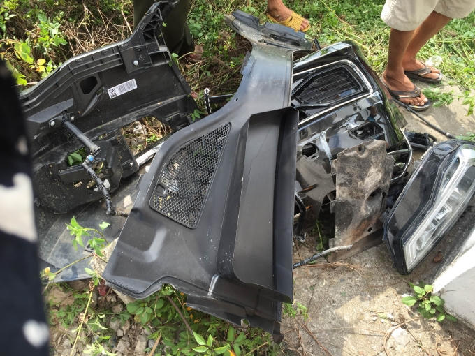 Cú va chạm mạnh làm chiếc xe ô tô Audi bị rơi xuống mương nước ven đường, làm hư hỏng hộp báo tín hiệu giao thông dựng gần đó. Phần đầu xe bị dập nát và thân xe bị hư hỏng nặng. Hai người ngồi trên xe ô tô bị thương.