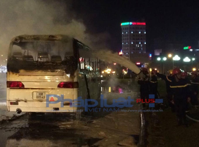 Đang lưu thông trên đường, bỗng nhiên xe ô tô khách 45 chỗ bốc cháy nghi ngút khiến cho rất nhiều người hoảng loạn.