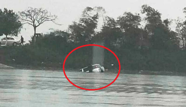 Chiếc ô tô bị trôi xuống sông, một người bên trong xe đã không thoát ra được và thiệt mạng.