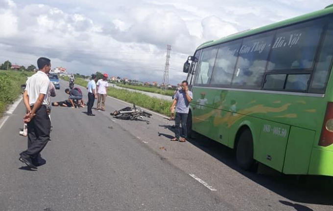 Nam Định: Xe máy húc trực diện xe khách đi ngược chiều, hai thanh niên tử vong tại chỗ