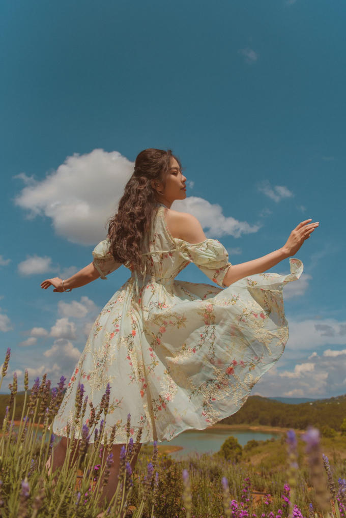 Nam Em xuất hiện bay bổng, giản dị với những chiếc váy hoa xinh xắn cùng nụ cười giòn tan. Ảnh: Đại Dương
