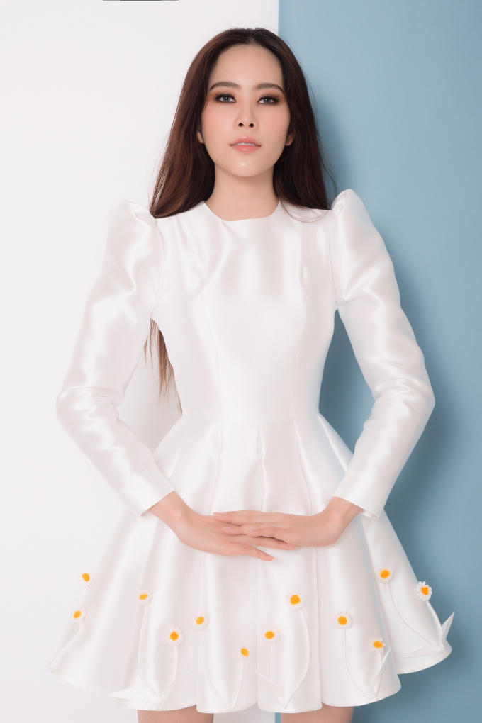 Xuất hiện trong BST thời trang mới nhất của Hoa hậu - NTK Hằng Nguyễn (thương hiệu Larenn) mang tên "Em Hạ", Nam Em gây thương nhớ với hình ảnh đầy nữ tính và khoe vẻ đẹp ngọc nữ tinh khôi...