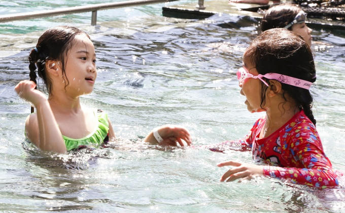 Trẻ em có khu bể bơi riêng tiêu chuẩn 5 sao quốc tế. Đặc biệt, Cam Ranh Riviera tinh tế phục vụ bữa ăn phụ giữa ngày với nhiều món ăn nhẹ như pizza, xúc xích, khoai tây chiên, hoa quả bốn mùa,...tiếp sức cho ngày dài nô đùa mệt nhoài của du khách nhí.