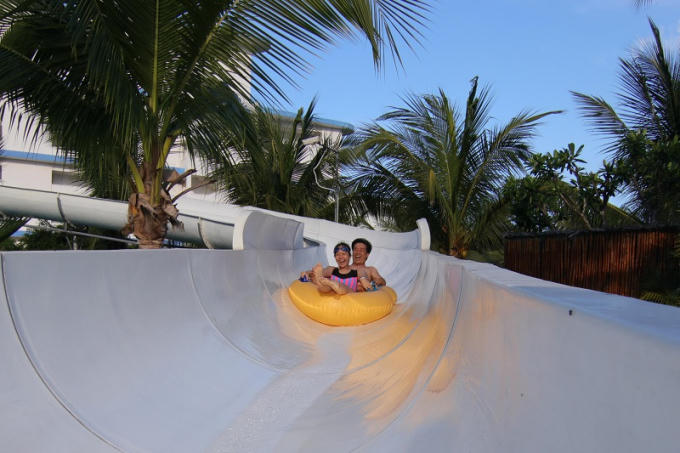Sau khi bơi lội, du khách tiếp tục xả stress tại khu công viên nước với các trò chơi sôi động, mạo hiểm, vui quên lối về tại Riviera. Đây cũng là một điểm nhấn tại resort 5 sao này.