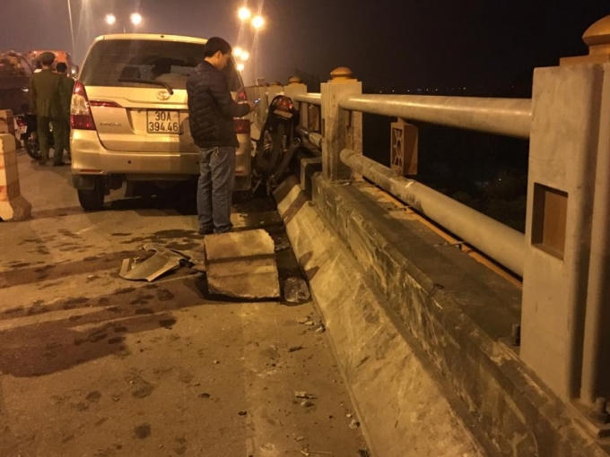 Sự việc xảy ra khoảng 20h30 ngày 4/11, một nam sinh viên đi xe máy mang biển kiểm soát tỉnh Thái Bình lưu thông trên cầu Thanh Trì theo hướng về Long Biên, Hà Nội thì bất ngờ bị xe ô tô 7 chỗ đâm thẳng.