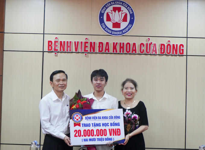 Với thành tích đặc biệt xuất sắc, ngày 29/8, đại diện lãnh đạo Bệnh viện Đa khoa Cửa Đông đã trao tặng em học bổng trị giá 20 triệu đồng để chúc mừng, động viên những nỗ lực, thành tích đáng tự hào của thủ khoa xứ Nghệ.
