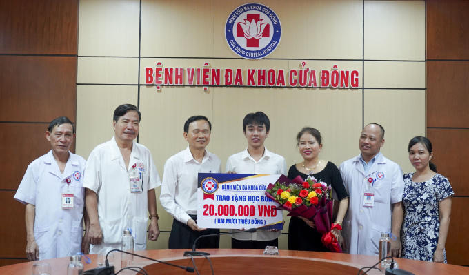 Lãnh đạo BVĐK Cửa Đông tặng hoa, trao học bổng động viên nam sinh trên con đường hoàn thành giấc mơ của mình.