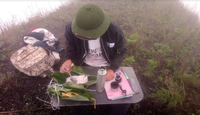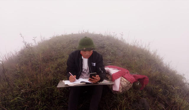 Thào A Chư, sinh viên lớp K54P1, chuyên ngành Luật Kinh tế, Khoa Kinh tế - Luật, Trường Đại học Thương mại, quê ở thôn Pắc Bẹ, xã Suối Tọ, huyện Phù Yên, tỉnh Sơn La lên núi học online