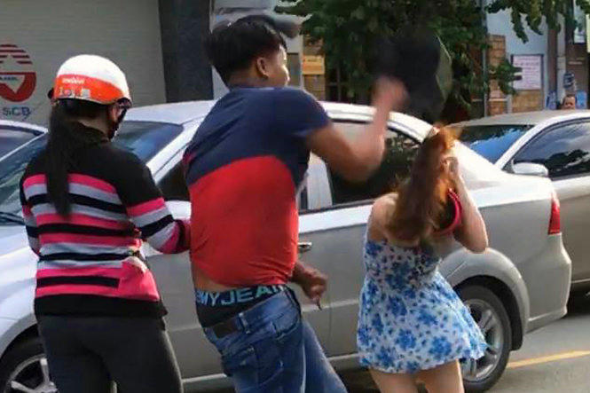 Khi di chuyển tới khu vực đường Cách Mạng Tháng 8 thì bị Tâm vượt lên chặn đầu và lấy mũ bảo hiểm đập vỡ cửa kính bên lái. Thấy vậy, chị Hà xuống xe để can ngăn thì bị Tâm dùng mũ bảo hiểm đập vào đầu rồi bỏ đi. Chứng kiến sự việc trên, nhiều người có mặt tại hiện trường đã ghi lại hình ảnh và chia sẻ lên mạng xã hội Facebook.