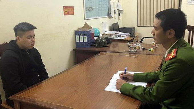 Cảnh sát lấy lời khai đối tượng Nguyễn Đức Anh.