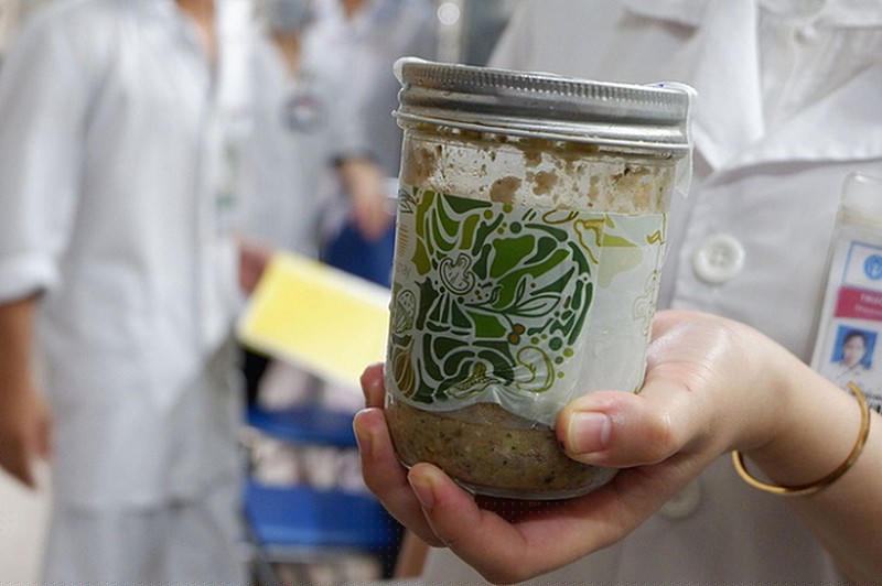 Hộp pate Minh Chay được hai vợ chồng sử dụng sau đó ngộ độc, lưu tại Bệnh viện Bạch Mai. Ảnh: Chi Lê