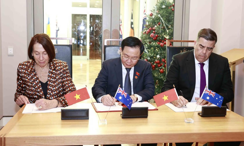 Chiều 30/11, tại trụ sở Nghị viện Australia, Chủ tịch Quốc hội Vương Đình Huệ đã tiến hành hội đàm với Chủ tịch Thượng viện Sue Lines và Chủ tịch Hạ viện Milton Dick.
