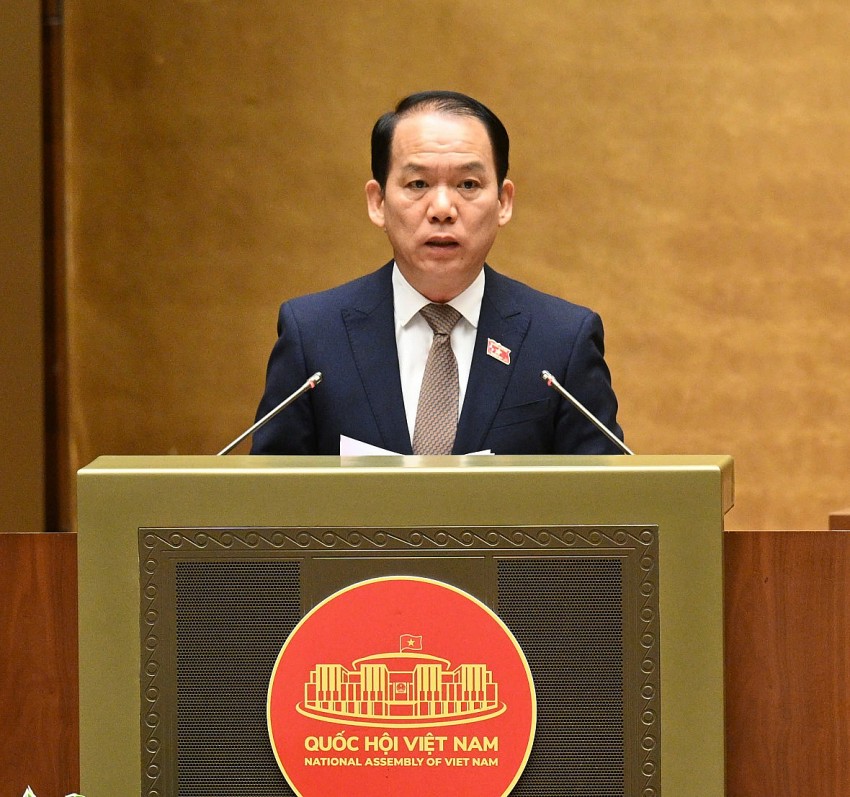 | Chủ nhiệm Ủy ban Pháp luật và Tư pháp Hoàng Thanh Tùng trình bày Báo cáo thẩm tra. Ảnh: quochoi.vn |
