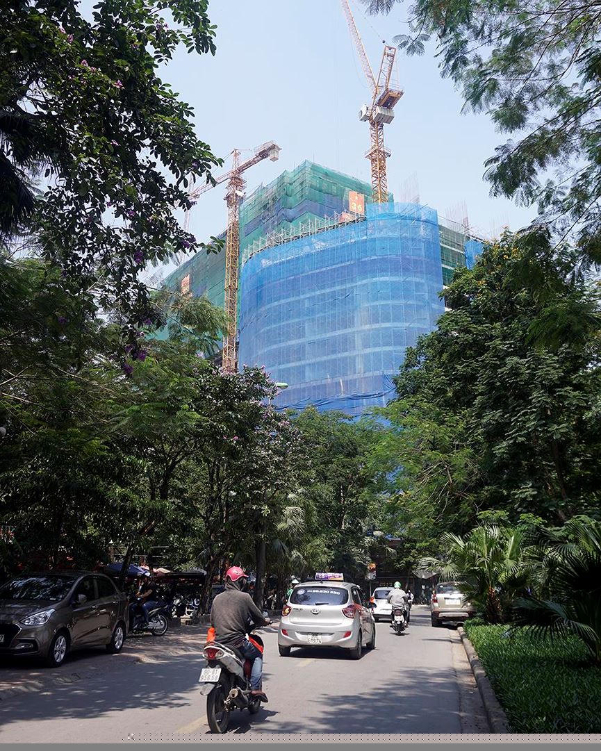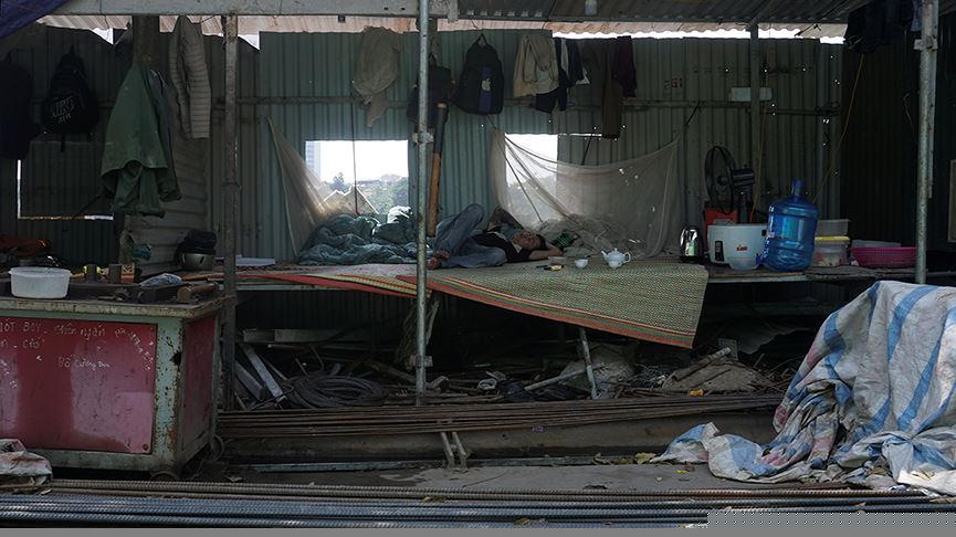 Phút nghỉ ngơi của những coog nhân lao động trên công trường xây dựng ở quận Cầu Giấy.