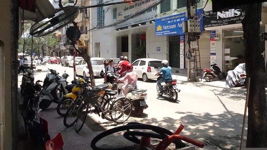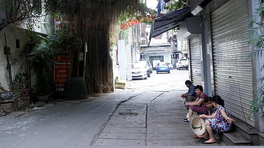 Đường phố vắng bóng phương tiện tham gia giao thông.