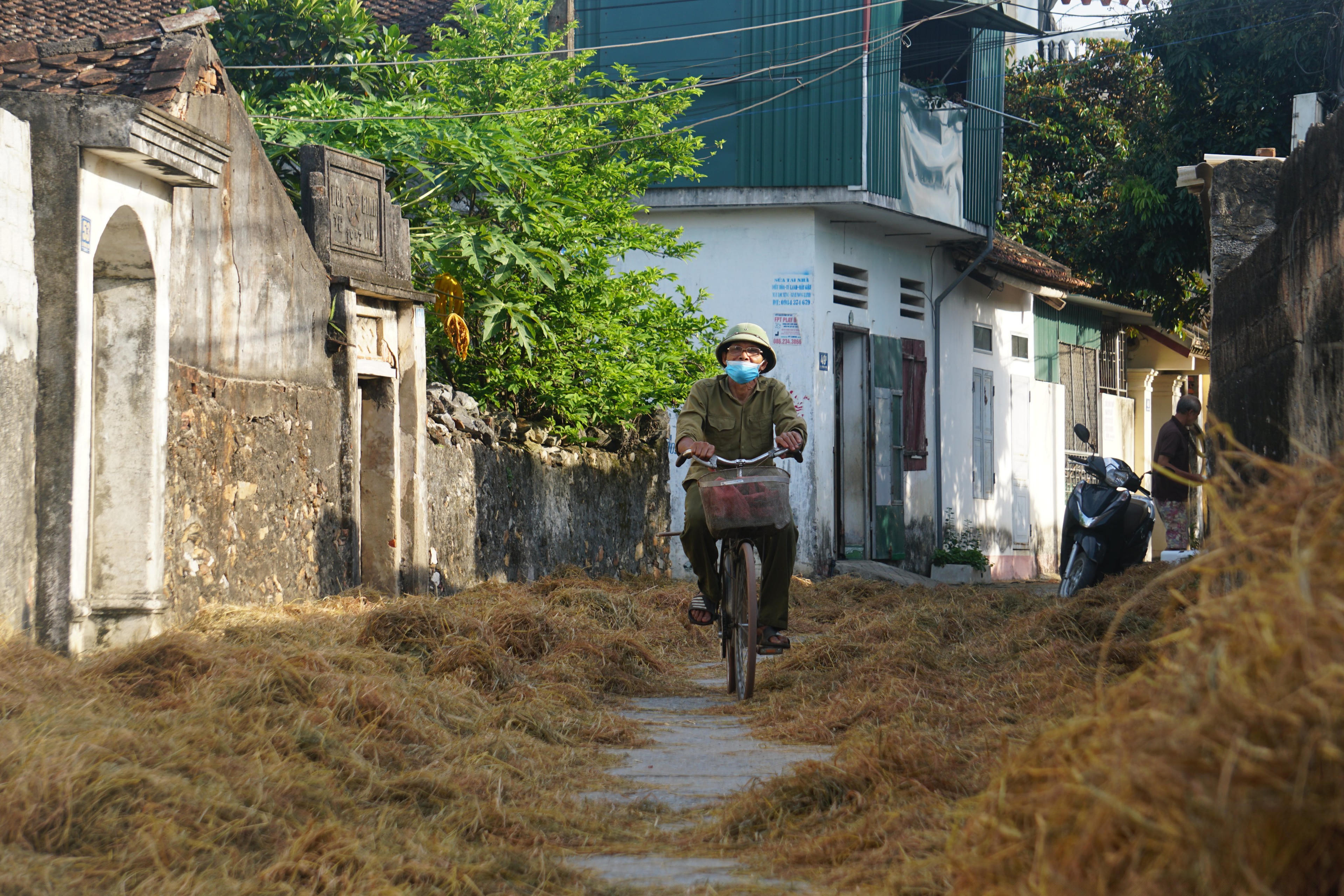 Nằm trong lòng thành phố Thanh Hóa, nhưng những ngày này, đi dọc các con đường ở làng cổ Đông Sơn không khó để bắt gặp hình ảnh về một bức tranh thôn quê bình dị của những người nông dân đang phơi lúa, rơm…