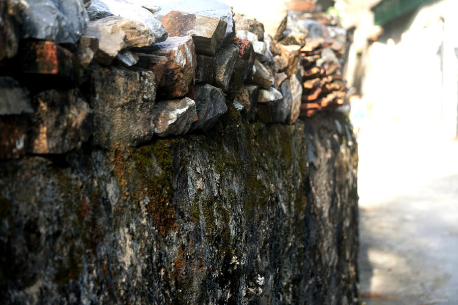 Những bức tường gạch, đá, hay thậm chí là nền đường nơi đây vẫn còn được lưu giữ, là những nét đẹp của một làng quê xưa.