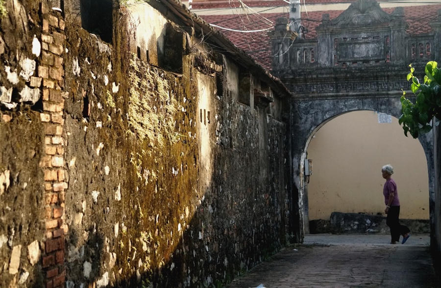 Những nét rêu phong, cổ kính hằn in trên từng bức tường, ghi lại dấu ấn thời gian nơi làng cổ Đông Sơn...