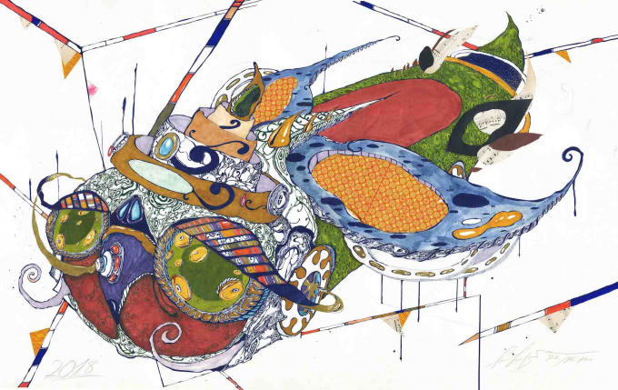 Với sự nhạy cảm mà một chút luyến tiếc, Kenny biến những lớp kiến trúc này thành lớp áo bọc bên ngoài các sinh vật hư cấu. Những nhân vật này ‘sống’ hay ‘ẩn náu’ dưới lớp vảy/vỏ bọc đầy màu sắc của sự tích tụ văn hóa, như chính chúng ta đang sống trong xã hội Việt Nam sau nhiều năm bị đô hộ, thuộc địa.