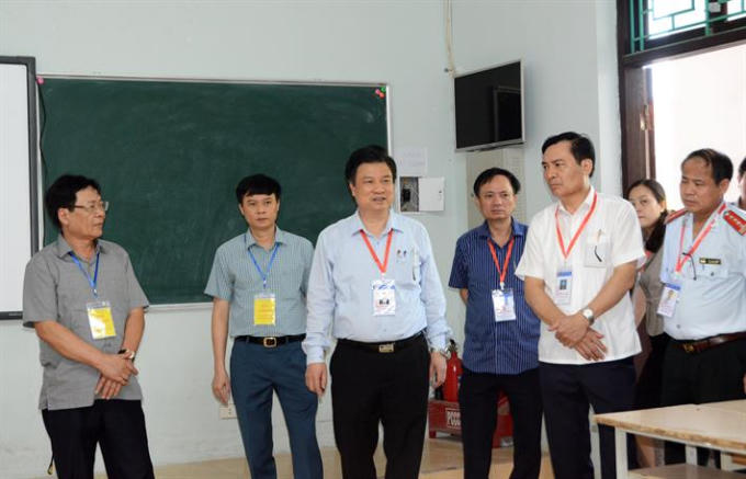Thứ trưởng Nguyễn Hữu Độ kiểm tra tại điểm thi Trường THPT Trần Văn Lan, huyện Mỹ Lộc, tỉnh Nam Định.