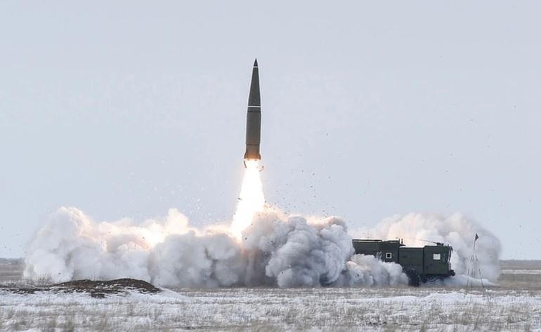 Tổ hợp tên lửa Iskander của Nga khai hỏa (Ảnh: Bộ Quốc phòng Nga).