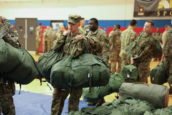 Binh sĩ Mỹ thuộc Sư đoàn Tăng số 1 xếp đồ lên đường tham gia tập trận tại châu Âu. Ảnh: BusinessInsider/US Army