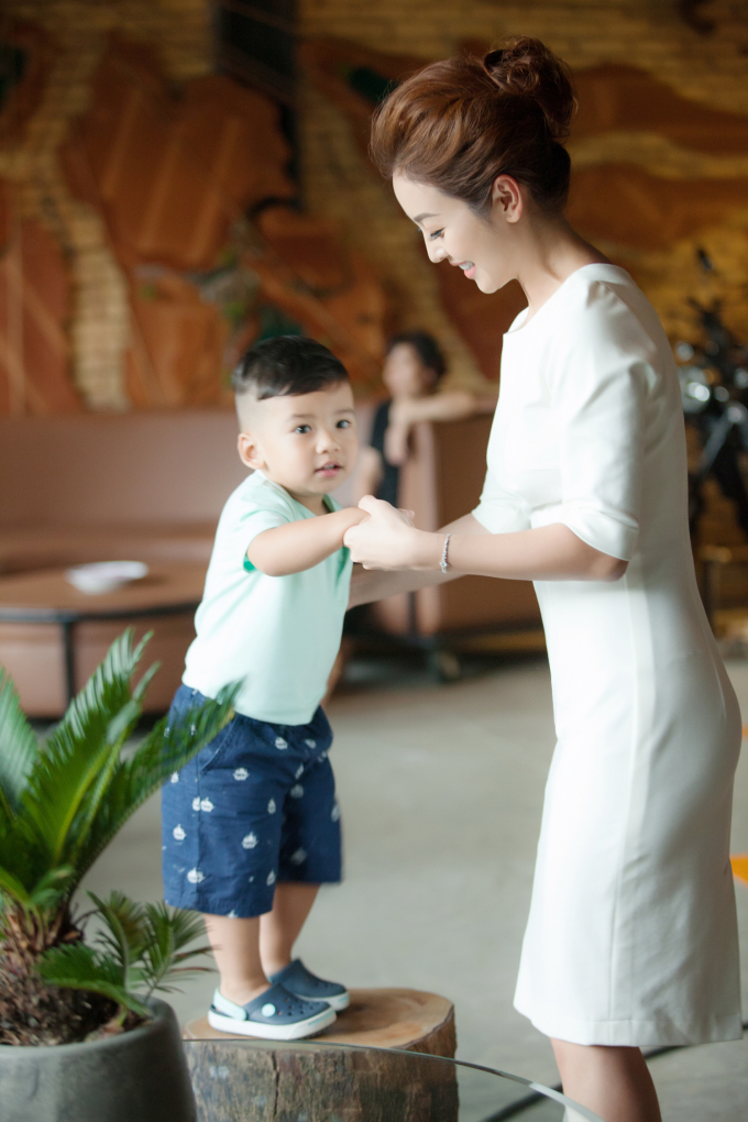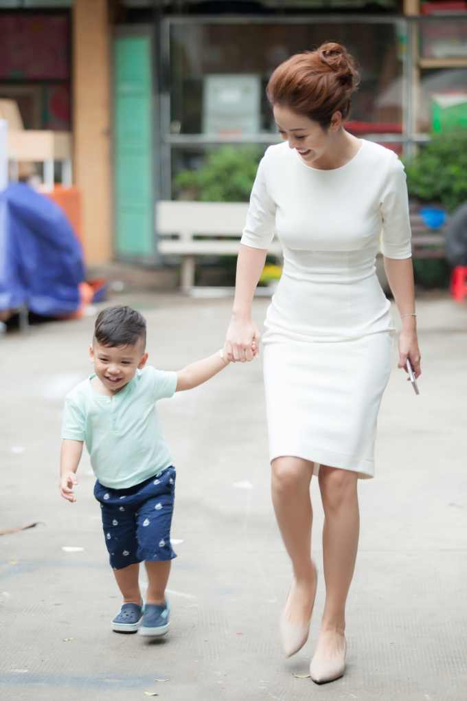 Vừa đáp máy bay Canada về đến Sài Gòn nhận lời làm giám khảo cho cuộc thi Hoa hậu Doanh nhân tại Canada, về tới nơi, cô tức tốc chạy tới trường quay để kịp quay cùng con trai của mình.