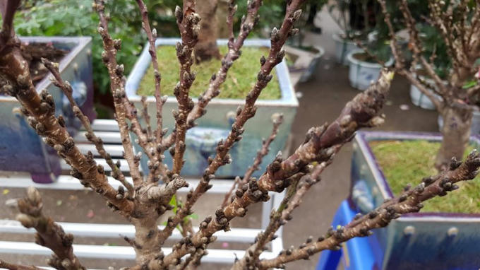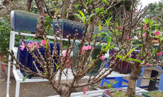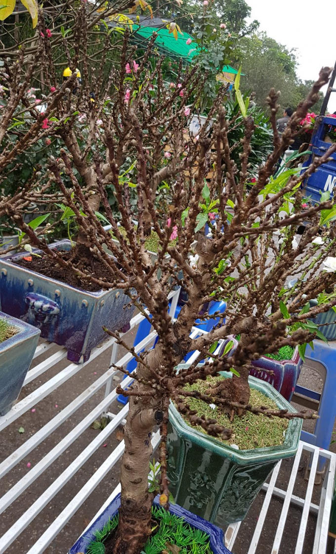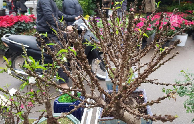 Những gốc đào mini chỉ cao chừng 30 - 40cm xuất hiện tại Hà Nội đang khiến nhiều khách mua cây chơi Tết “bỏ rơi” những cây đào thế gốc “khủng”.