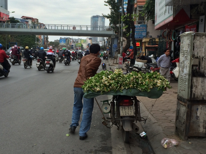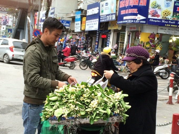 Chị Trần Thị Hoa (Hưng Yên) cho biết: “5h sáng, tôi bắt đầu đến vườn hái hoa rồi tranh thủ mang lên Hà Nội đi dạo bán, thường ngày thì tôi đi bán bơ bán táo. Nhưng cứ đến mùa hoa bưởi là tôi lại bắt đầu đi lấy hoa về bán. Bán hoa bưởi lời lãi không được bao nhiêu nhưng mà vui, vì phải nhẹ nhàng với từng cánh hoa chứ không là nó gãy hoa không đẹp không được giá”.