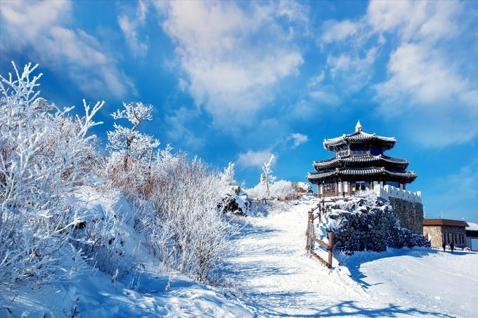 Vườn quốc gia Deogyunsan, Hàn Quốc Đây là một trong những điểm trượt tuyết nổi tiếng nhất của Hàn Quốc, cách thủ đô Seoul khoảng 3 giờ lái xe. Nơi đây có những đường dốc tuyết dài cho người chơi chuyên nghiệp và cả dốc phù hợp cho người mới bắt đầu. Ảnh: Raker/Shutterstock.