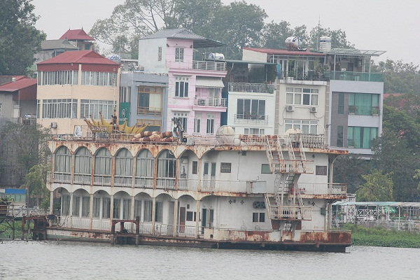| Các tàu thuyền, nhà nổi đã cũ nát trên Hồ Tây. |