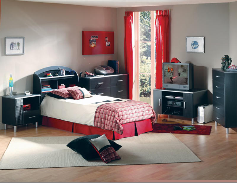 Căn phòng được thiết kế khi có sự tương phản giữa các gam màu đỏ-đen-trắng.