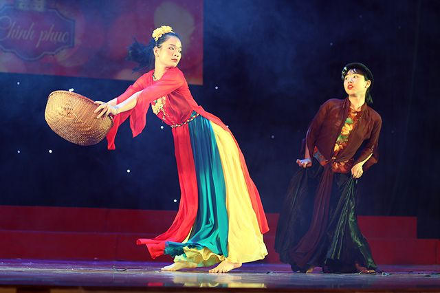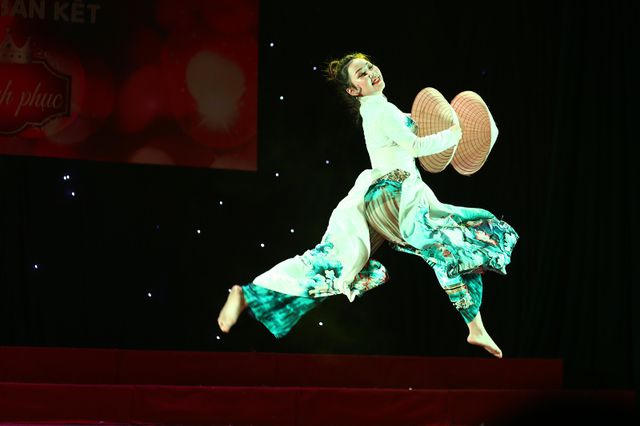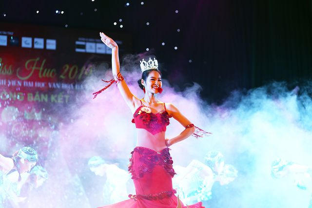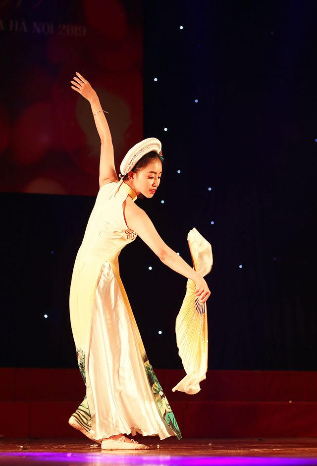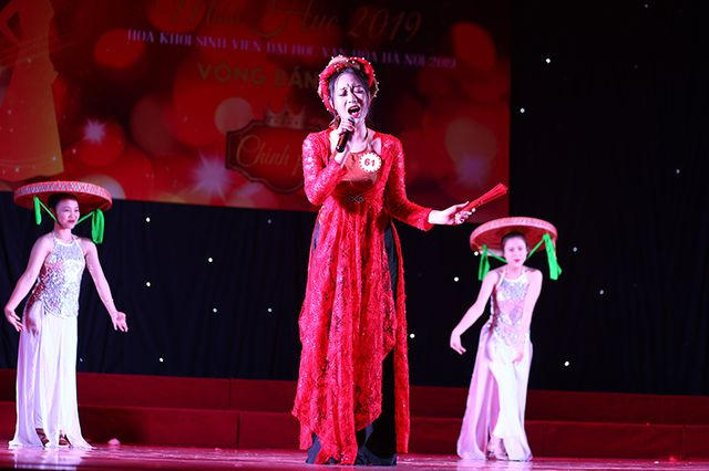 Không chỉ thể hiện vẻ đẹp năng động, tự tin thông qua các điệu nhảy hiện đại nóng bỏng, nữ sinh ĐH Văn hóa còn thể hiện sự trẻ trung, năng động của mình khi đưa các yếu tố hiện đại kết hợp truyền thống vào phần thi tài năng của mình.